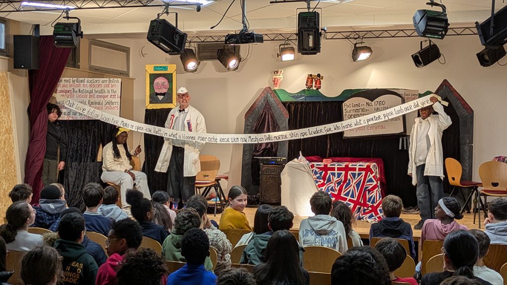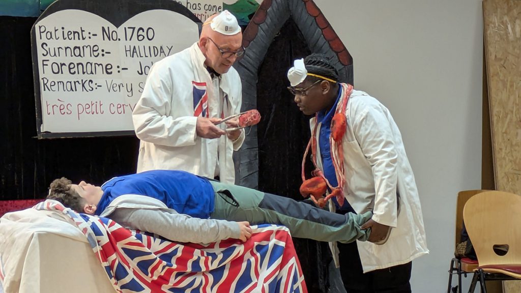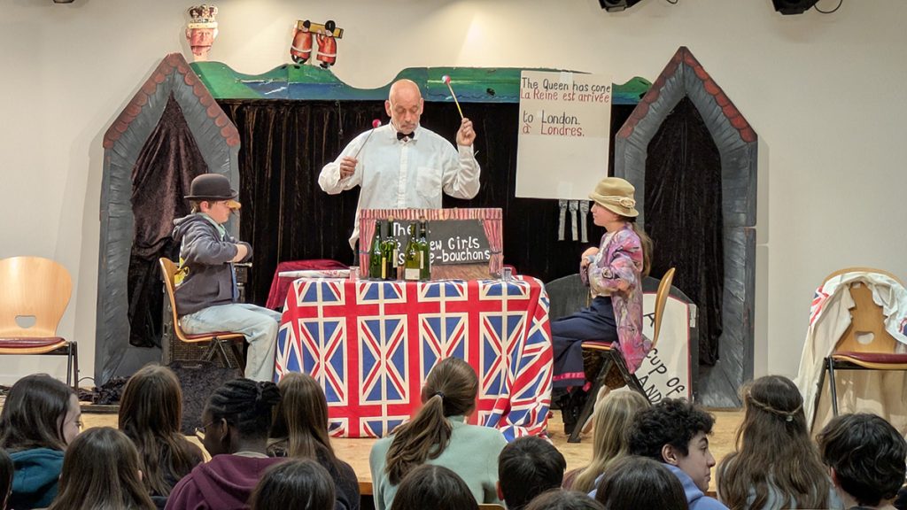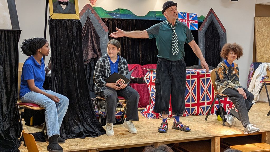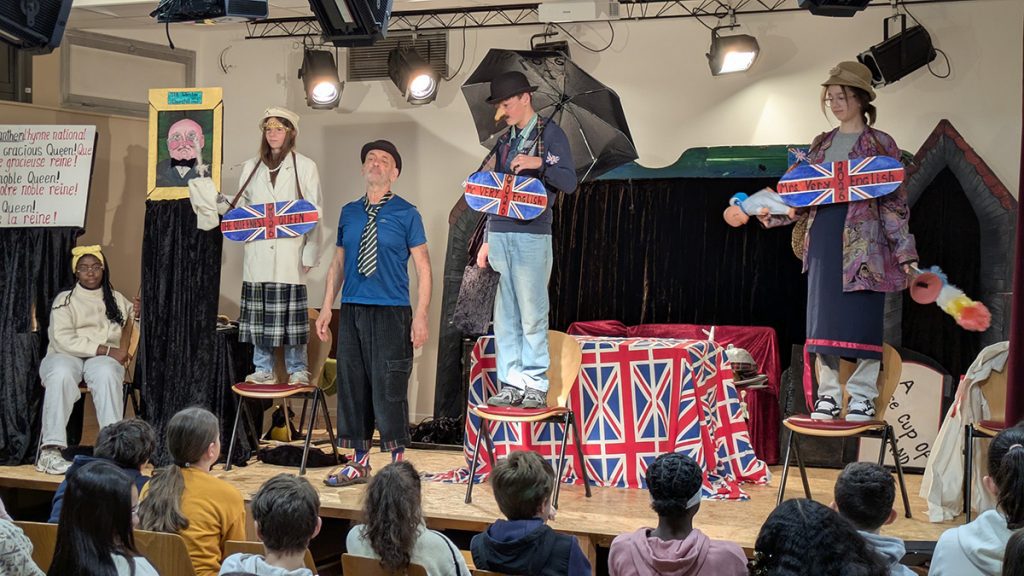 C’est un spectacle à l’humour original et décalé qui invite à se poser des questions sur les clichés et stéréotypes qui peuvent enfermer un pays et ses habitants dans une image erronée et souvent loin de la réalité. Les élèves se sont d’autant plus amusés qu’ils ont pu voir certains de leurs camarades monter sur scène, revêtir un costume et jouer différents rôles.